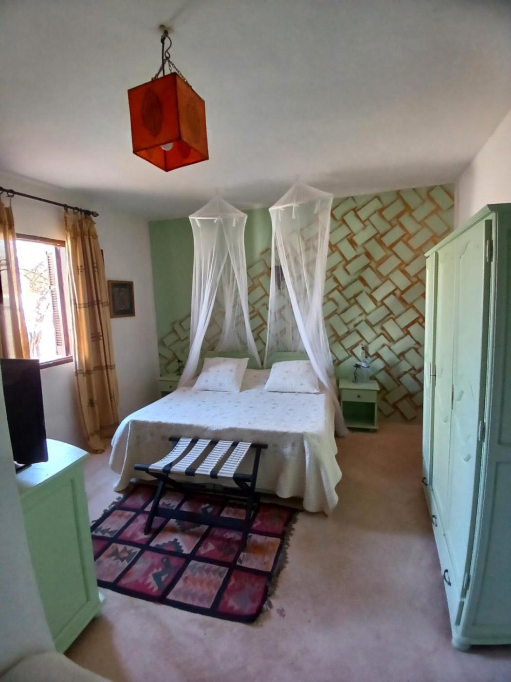 Jasmin Double Room. This bright room, located inside the main house, is air-conditioned. The king-size bed is covered with old-fashioned embroidery sheets, pillows and blanket. A TVwith satellite channels is at your disposal in the room. You have access to the houses bathroom fitted with towels, bathrobes and a hair dryer. ;